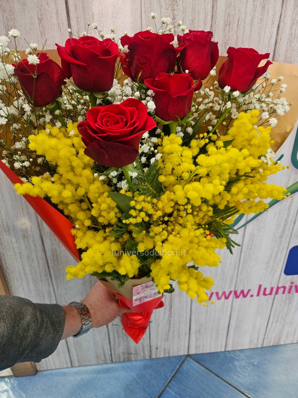 Non perdere l’occasione di regalare un gesto d'amore con il nostro fascio di rose rosse e mimosa. Contattaci oggi stesso!