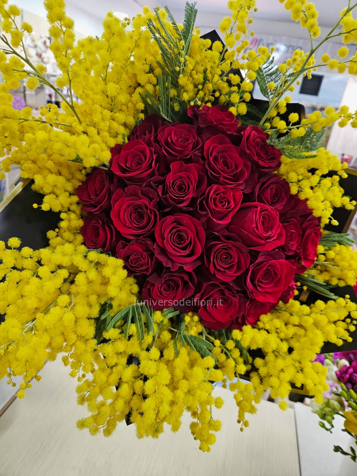 49,99 euro Boquet compatto 15 rose rosse e mimosa